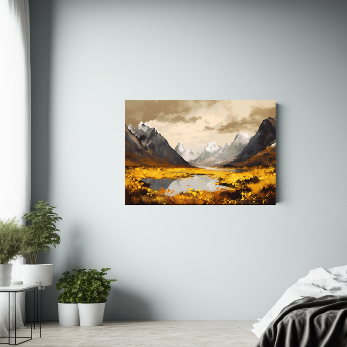 Pintura Paisaje Montaña Amarillo Inspirador.