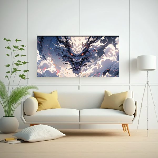 Agrega un toque de elegancia y misterio a tu sala de estar con este impresionante cuadro de un dragón blanco en un ambiente neo-noir de colores vibrantes La mejor calidad y precios económicos garantizados Dale vida a tu espacio con arte exclusivo de DecoCuadros