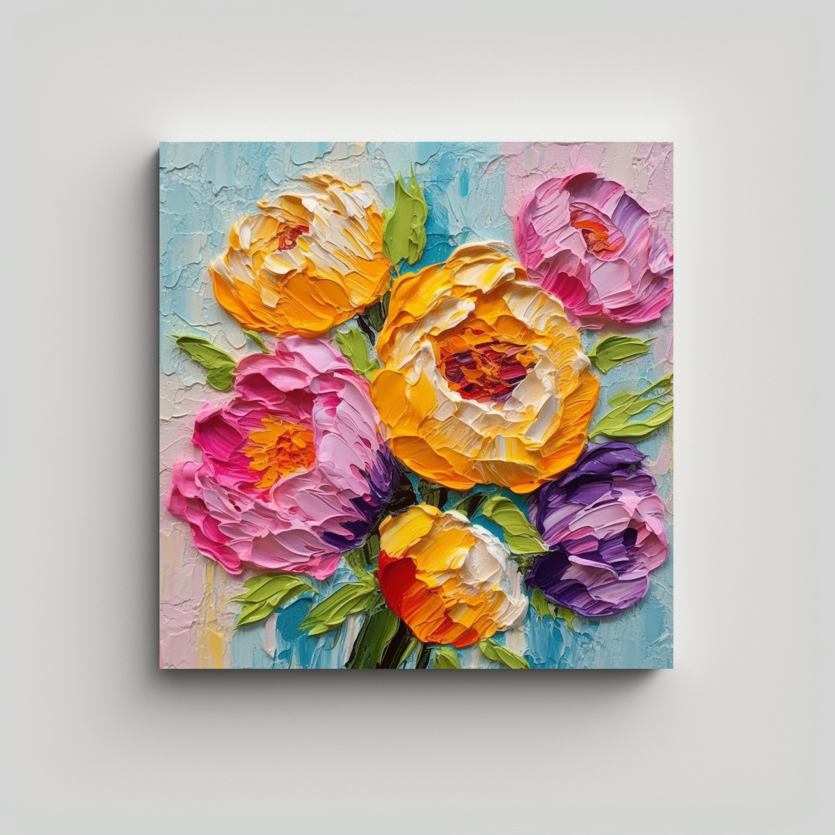 Pintura Peonía Gruesa Colorida Para Decoración De Cuarto