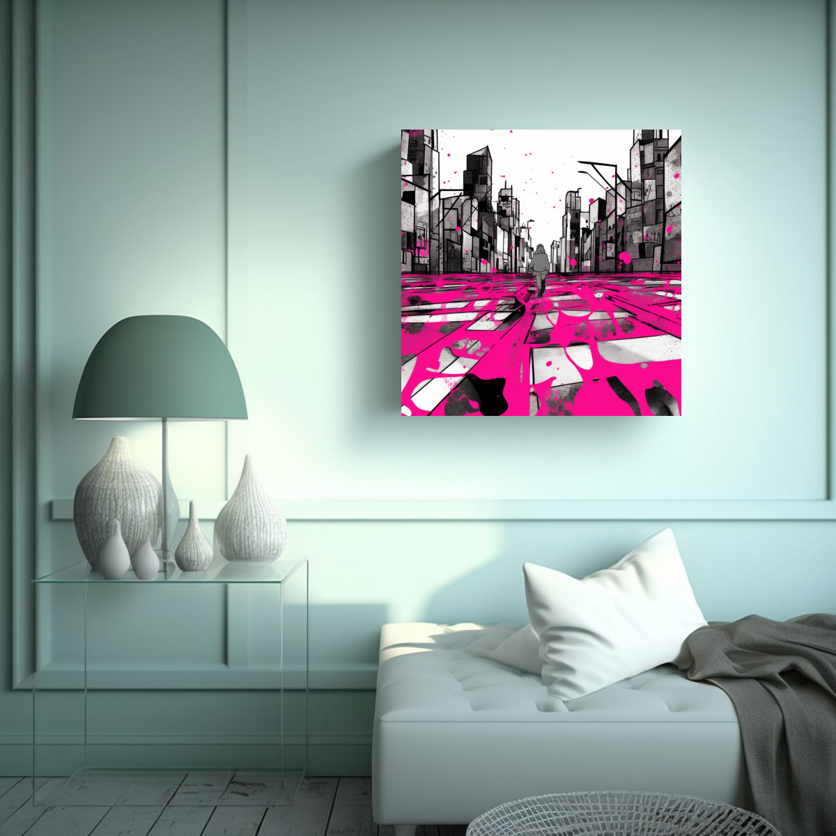 Este cuadro es perfecto para decorar un dormitorio o una sala de estar con estilo moderno Colócalo sobre un mueble blanco o una pared gris para resaltar los colores vibrantes Combínalo con cojines o cortinas en tonos rosados y grises para crear una armonía visual en la habitación