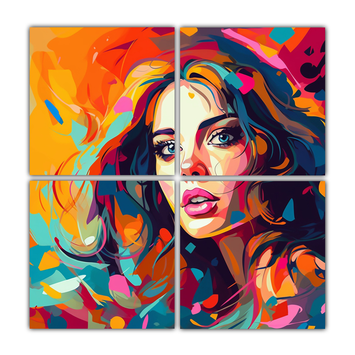 DecoCuadros ofrece cuadros decorativos impresos en tela de alta calidad con bastidores de madera Compra ahora el cuadro ‘Pintura por números en lienzo de composición cálida Cuatro Canvas’ con colores plateado, carmesí, azul marino grisáceo, dorado, rosado claro, menta, coral y verde azulado Tenemos los mejores precios del mercado y diseños exclusivos Entrega rápida y gratuita en Santiago y envíos express a regiones