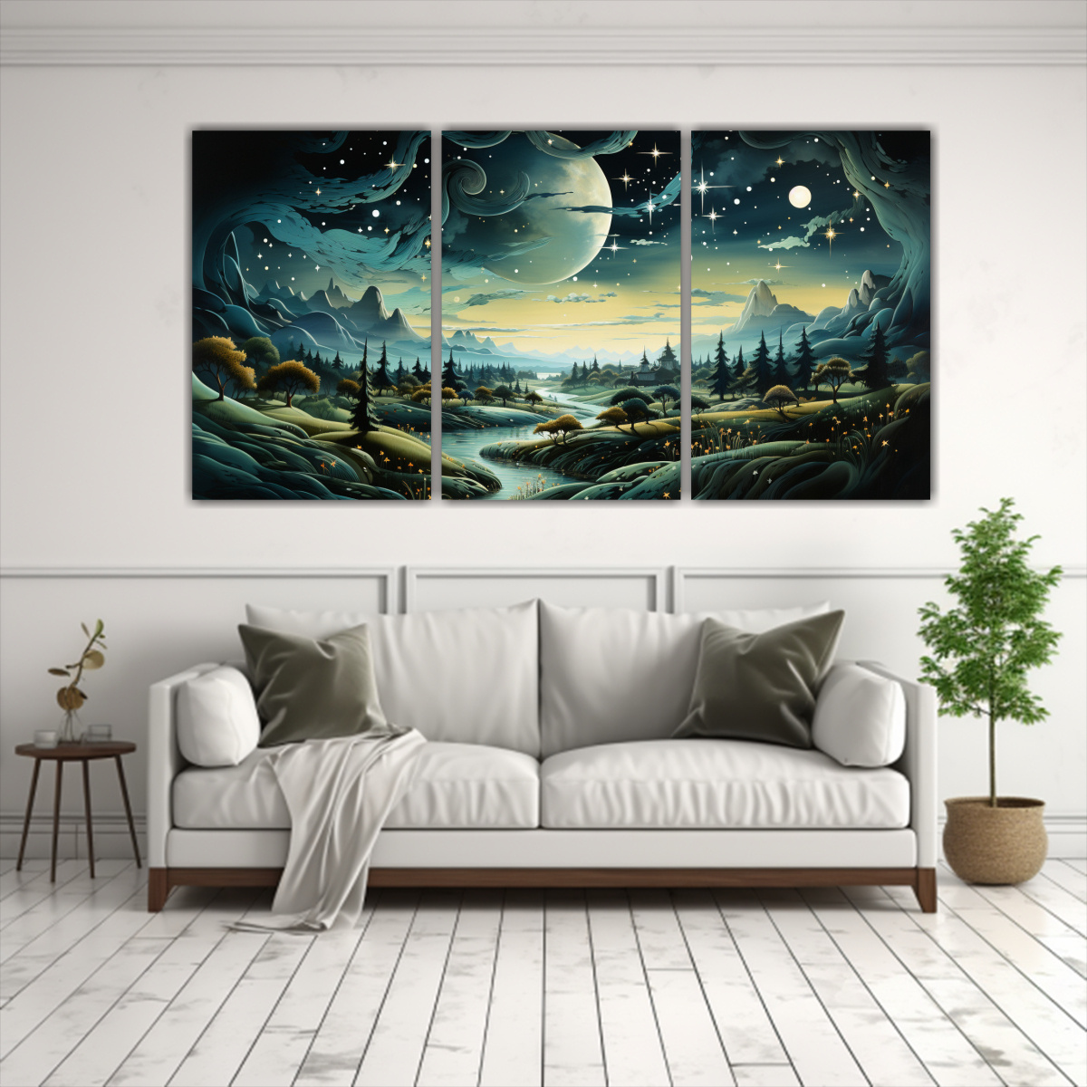 Pintura Set 3 Artes Moderno Montaña Luna Estilo Vitalidad