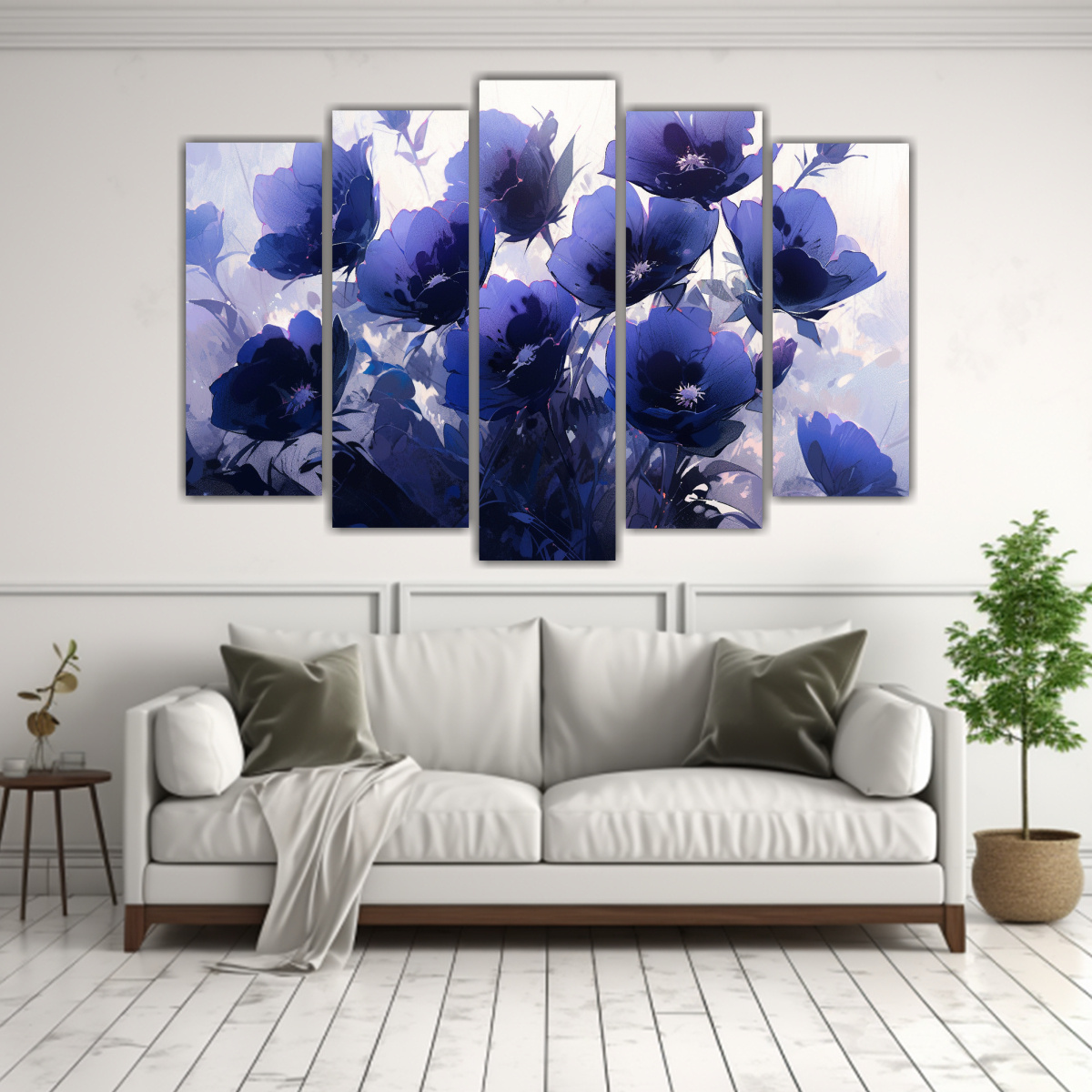 Este cuadro de flores en tonos púrpura y violeta se verá espectacular en tu sala de estar sobre un sofá de color beige, resaltando la elegancia y añadiendo un toque de color vibrante a tu decoración