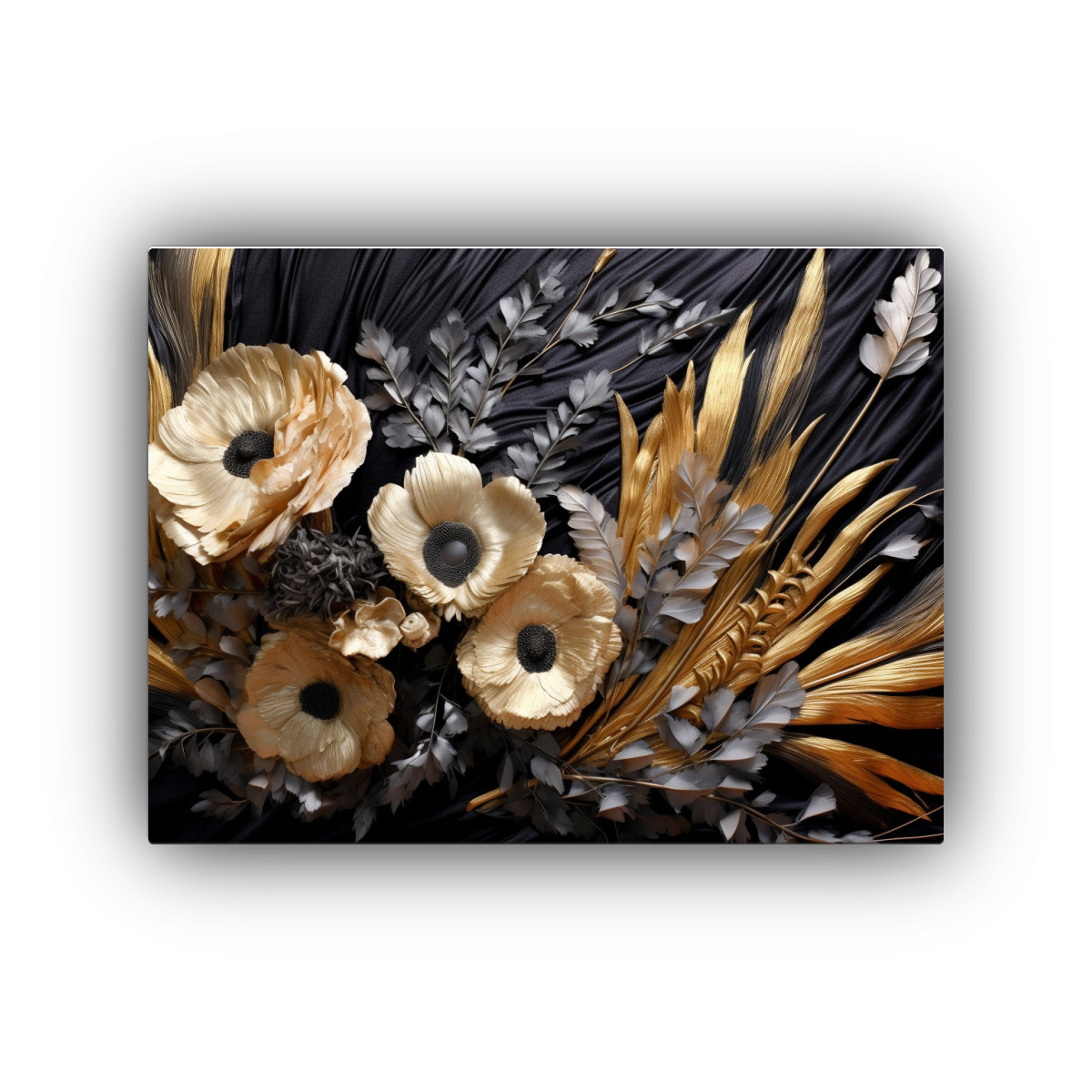 Este cuadro de tela de alta calidad con detalles florales en tonos plateado, negro, gris, azul marino grisaceo y chocolate es ideal para decorar salas de estar, dormitorios o pasillos Colócalo sobre una pared blanca para resaltar su belleza y crear un contraste visual impactante
