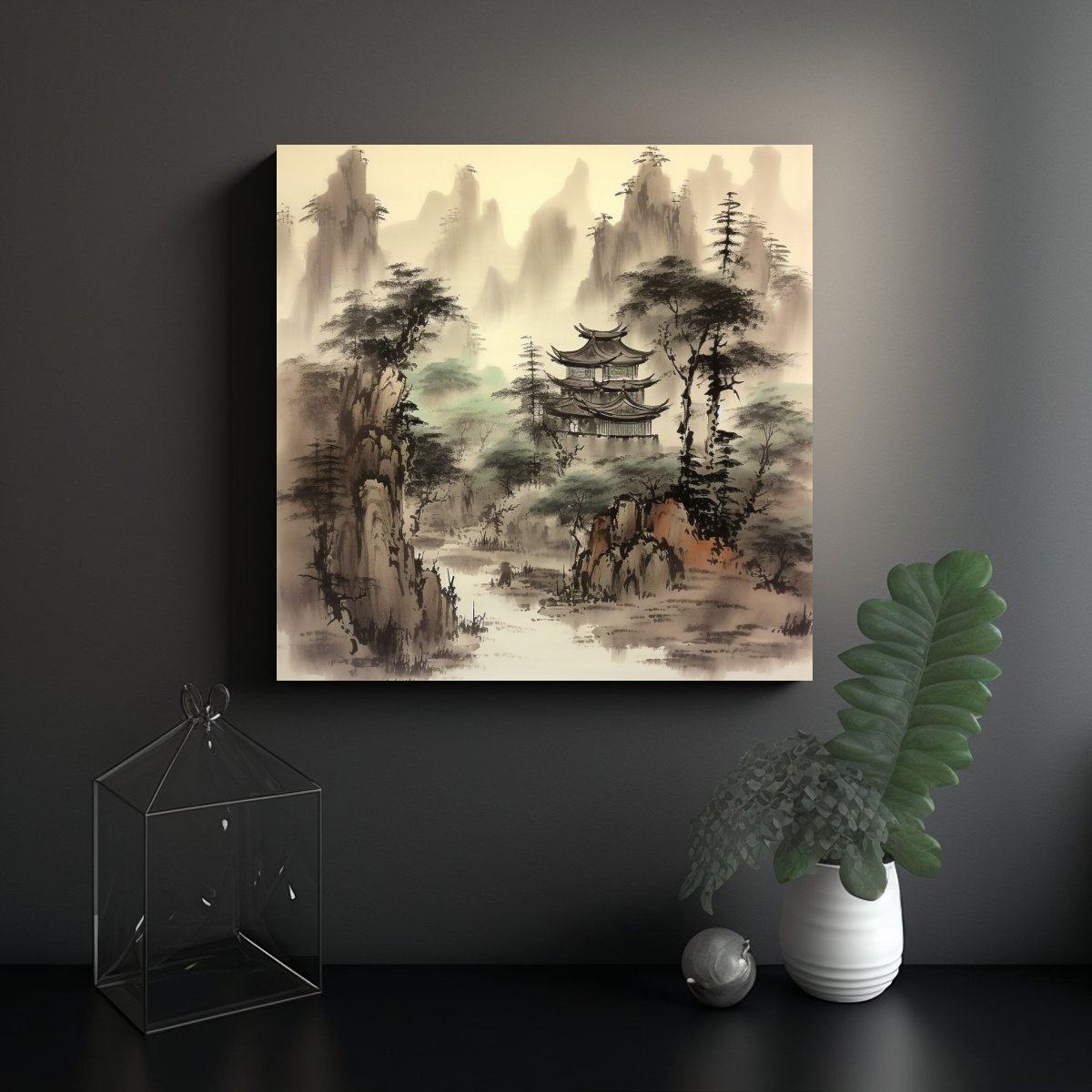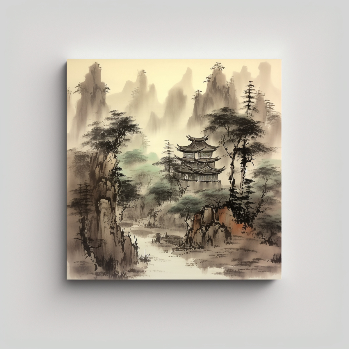 Pintura Tinta China Estilo Lienzo Conceptual Arte Decorativo Oriental