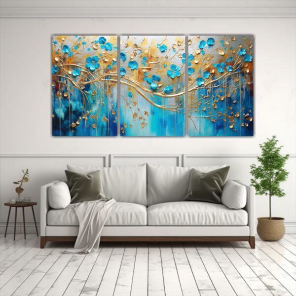 Pintura Tres Canvas Vanguardia Alta Resolución En Colores Vibrantes Y Dorados En Pinturas Decorativas