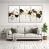 Este tríptico de arte urbano encajará perfectamente en tu sala de estar o estudio moderno Combínalo con muebles en tonos neutros y añade elementos decorativos en colores dorado y plateado para resaltar aún más la elegancia de la pintura