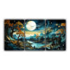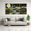 Pintura Tríptico De Abstracción Calidez Con Luna Cerca De Las Montañas