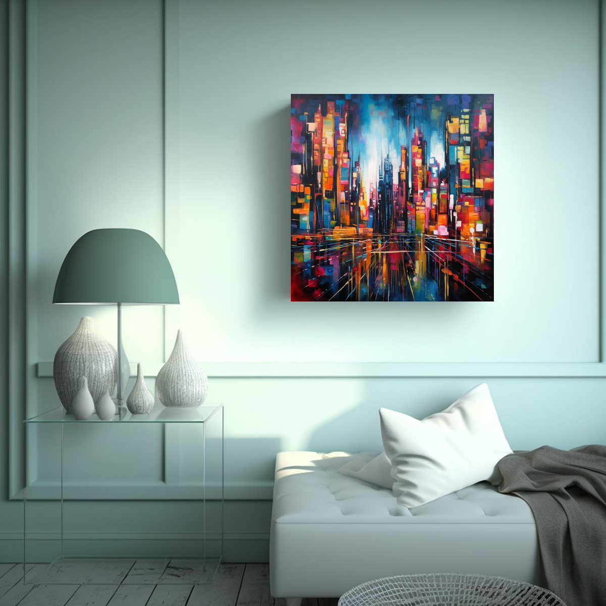 Este cuadro es ideal para decorar tu sala de estar o tu estudio Combínalo con muebles en tonos neutros como blanco o gris, y añade detalles en los colores presentes en el cuadro para lograr una armonía perfecta Colócalo sobre un sofá o una mesa de centro para crear un punto focal impresionante ¡Transforma tu espacio con este cuadro urbano abstracto de DecoCuadros!