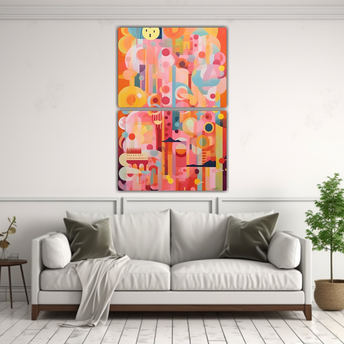 El cuadro Pintura Urbana Abstracta con Líneas Finas en Lienzo de DecoCuadros es perfecto para agregar un toque moderno y colorido a tus espacios Este cuadro abstracto en tela de alta calidad presenta una combinación de colores vibrantes como el Rosado Claro, Carmesí, Azul Marino Grisaceo, Coral, Turquesa, Beige y Plateado Con su diseño exclusivo y líneas finas, este cuadro será el centro de atención en cualquier habitación