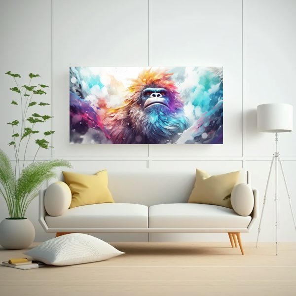 Renueva tu espacio con esta impactante pintura urbana de un Yeti en estilo acuarela Los colores reflejan modernidad y frescura, perfectos para ambientes contemporáneos Atrévete a darle vida a tus paredes con este cuadro único de DecoCuadros