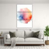 Descubre nuestras composiciones de vanguardia en esta pintura de acuarela colorida redonda suave Con los colores carmesí, plateado, coral, gris, rosado claro, amarillo claro y beige, este cuadro exclusivo de DecoCuadros le dará un toque refinado a cualquier espacio