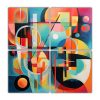 Pintura Vanguardia Luminosidad: 4 Lienzos Con Formas Abstractas Y Bolos