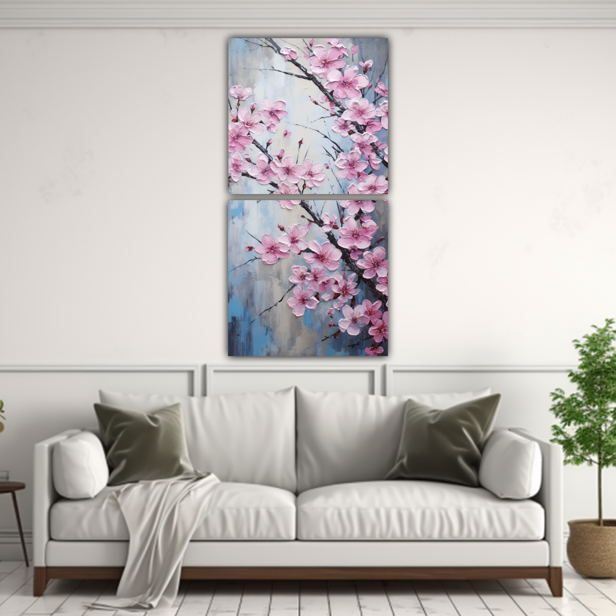 Pintura Vertical Inspiración En Colores Vibrantes De Cerezos En Floración Sobre Lata