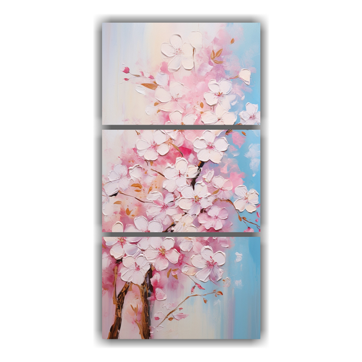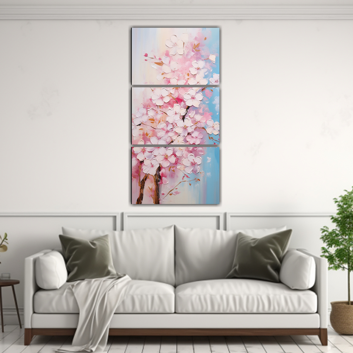 Para complementar la decoración de tu baño, te recomendamos colocar este cuadro de cerezos en flor sobre una repisa flotante o en una pared libre de accesorios para que se convierta en el punto focal de la habitación Combínalo con toallas en tonos neutros para resaltar los colores vibrantes de la pintura