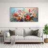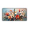 Agrega vida y color a tu hogar con este cuadro de flores en lienzo al estilo de Vib Colores plateado, azul marino grisaceo, carmesí, gris, beige y turquesa