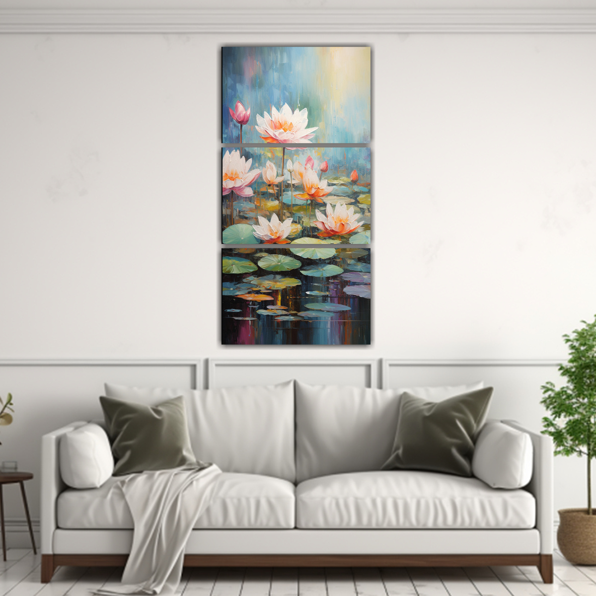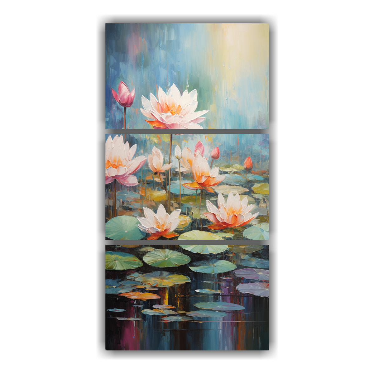 Pintura Vibrante De Loto En Lienzo: Vitalidad Y Colores Enérgicos