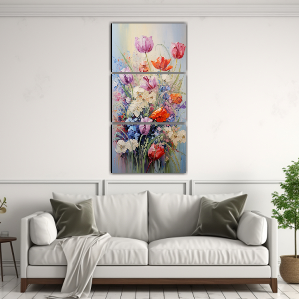 Pintura Vibrante De Tulipanes En Lienzo Para Decorar Set De 3 Telas En Bastidor.