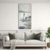 Pintura Vintage En Lienzo Para Dormitorio Con Acuarela En Blanco, Turquesa Y Plateado.