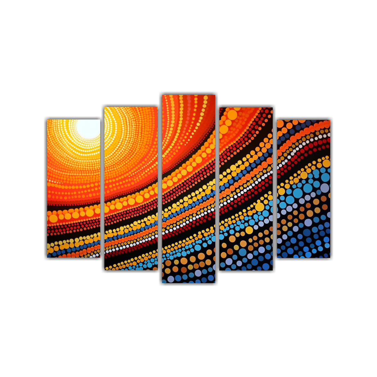 Sumérgete en la belleza de la pintura aborigen al atardecer con nuestro exclusivo cuadro Ideal para decorar tu hogar con un toque de arte y color Envíos rápidos y gratuitos en Santiago, ¡encuentra el tuyo en nuestra tienda ahora!