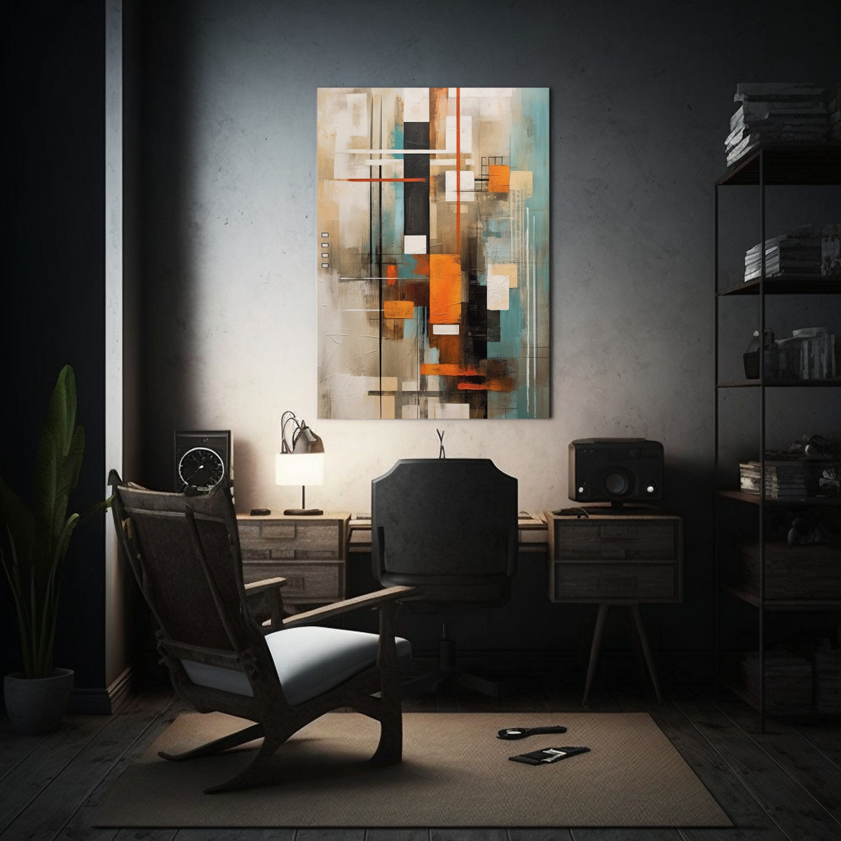 DecoCuadros te trae el cuadro ‘Canva Tonos Refinado 2023 abstracted unavailable’ con tonos Azul Marino grisaceo, Plateado, Carmesi, Gris, Beige, Chocolate, Menta Diseño exclusivo y entrega rápida y gratis en Santiago