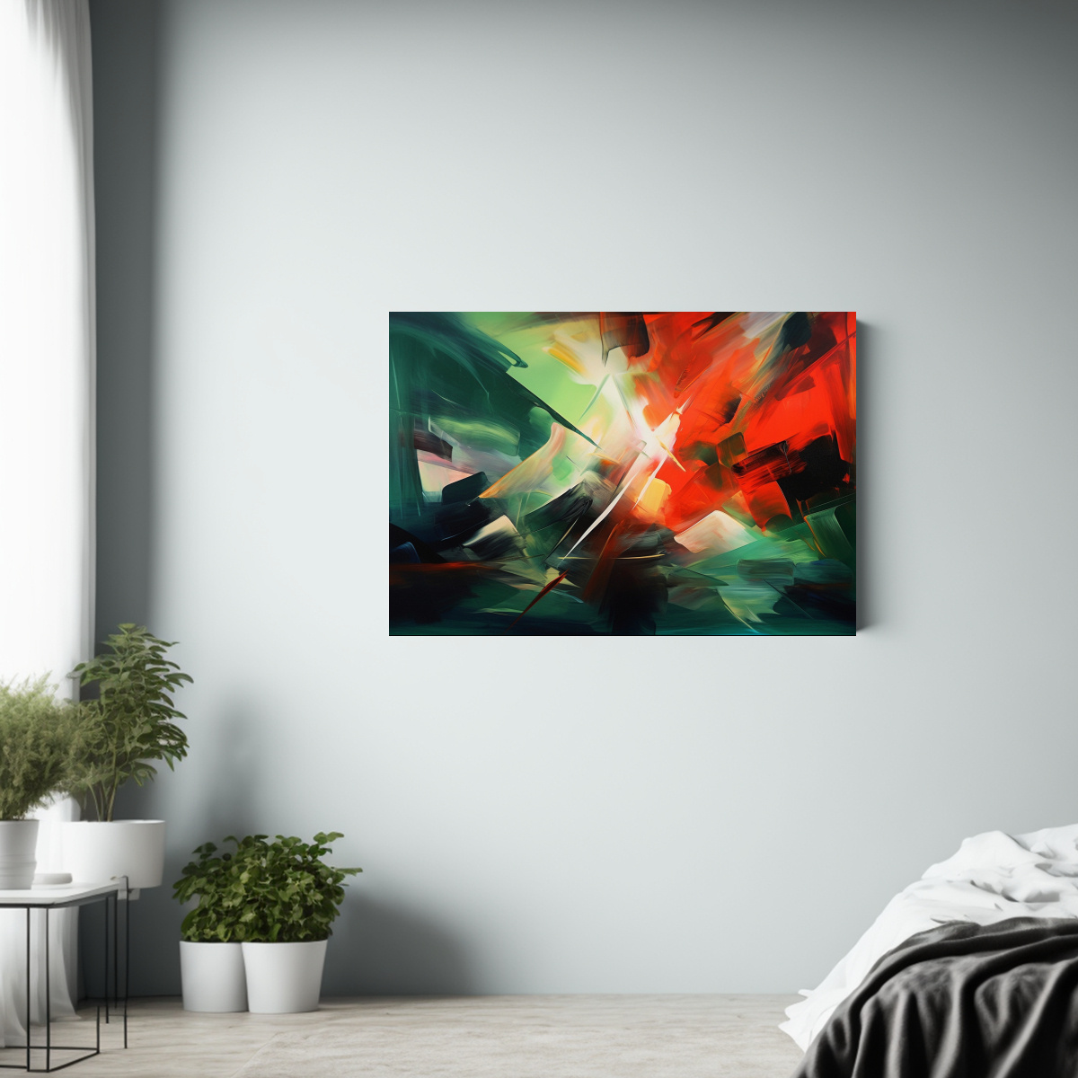 Este cuadro se vería magnífico en el salón principal sobre un sofá de tonos neutros, creando un contraste elegante Asegúrate de iluminar la zona para resaltar los colores vibrantes y la intensidad de la obra