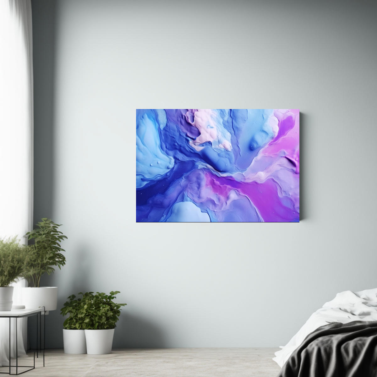 Este cuadro abstracto con tonos de violeta, turquesa, lila, plateado y gris es ideal para decorar salas de estar, dormitorios o incluso oficinas modernas Colócalo en una pared blanca para resaltar su belleza y crear un ambiente sofisticado y vanguardista