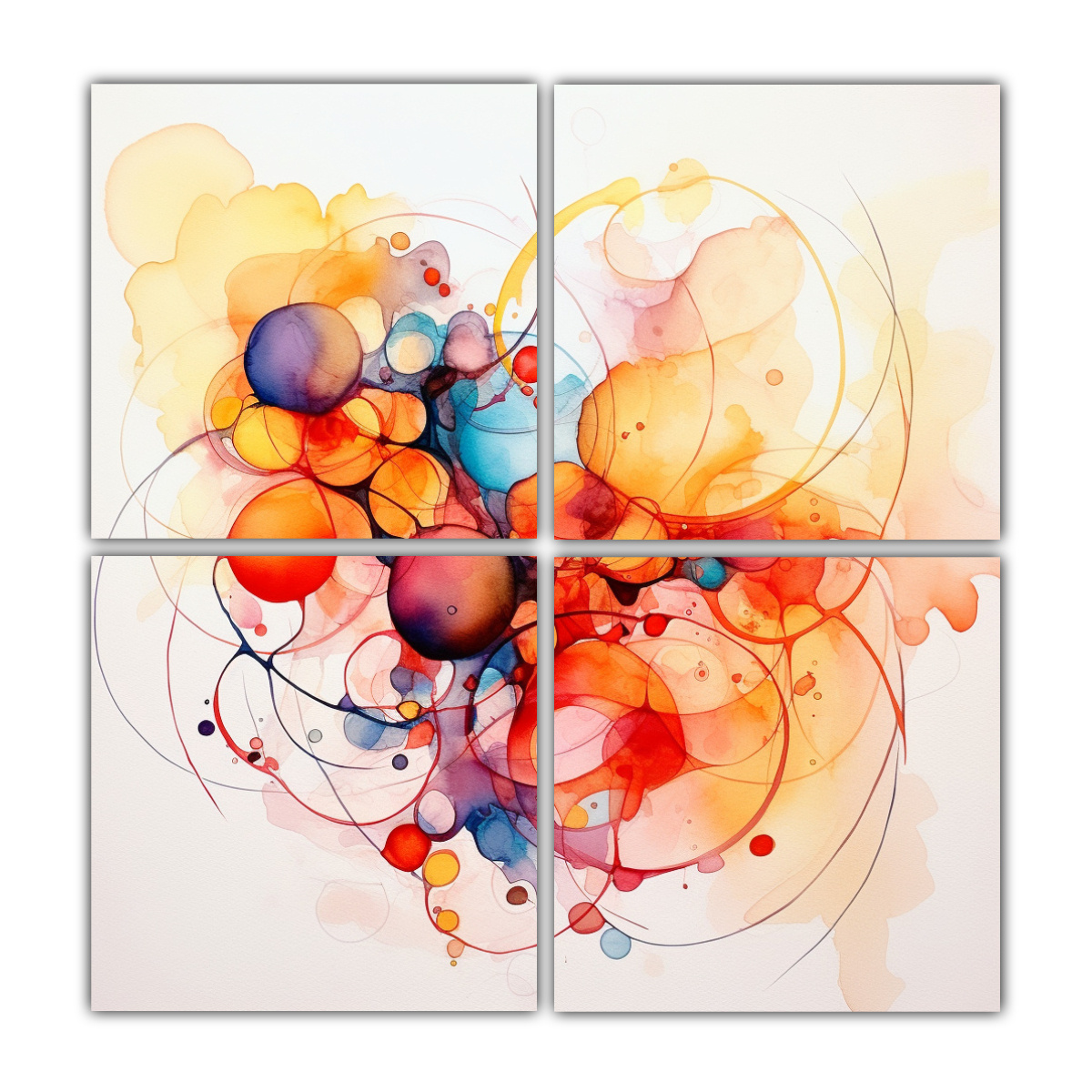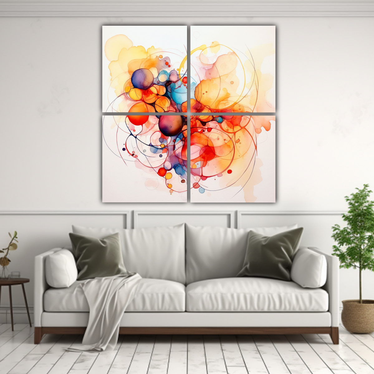 Pinturas Abstractas Acuarela En Bastidor: 4 Telas Rectangulares