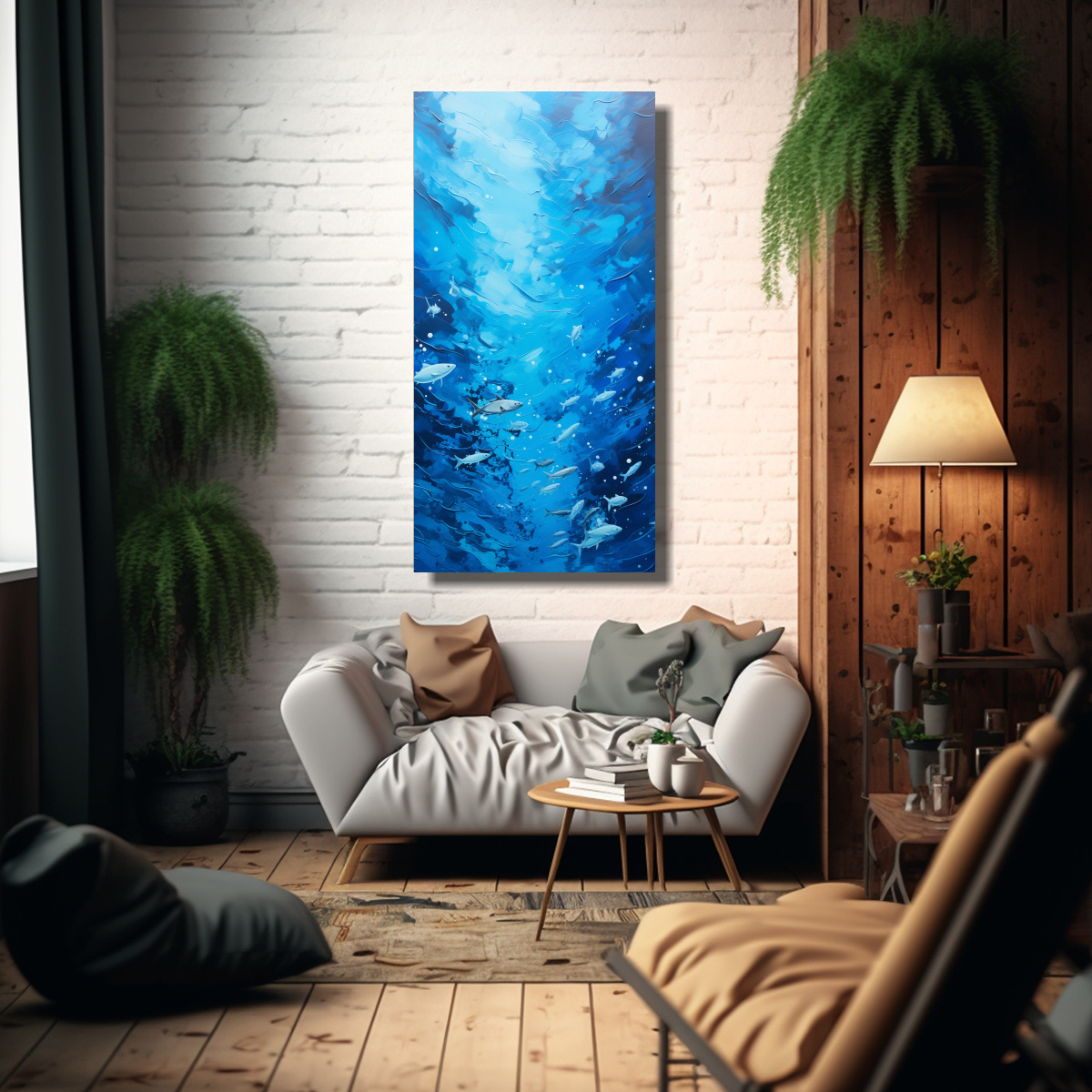 Pinturas Abstractas Arte Cálidos Simétrico: Sumérgete En Los Profundos Azules Del Océano.