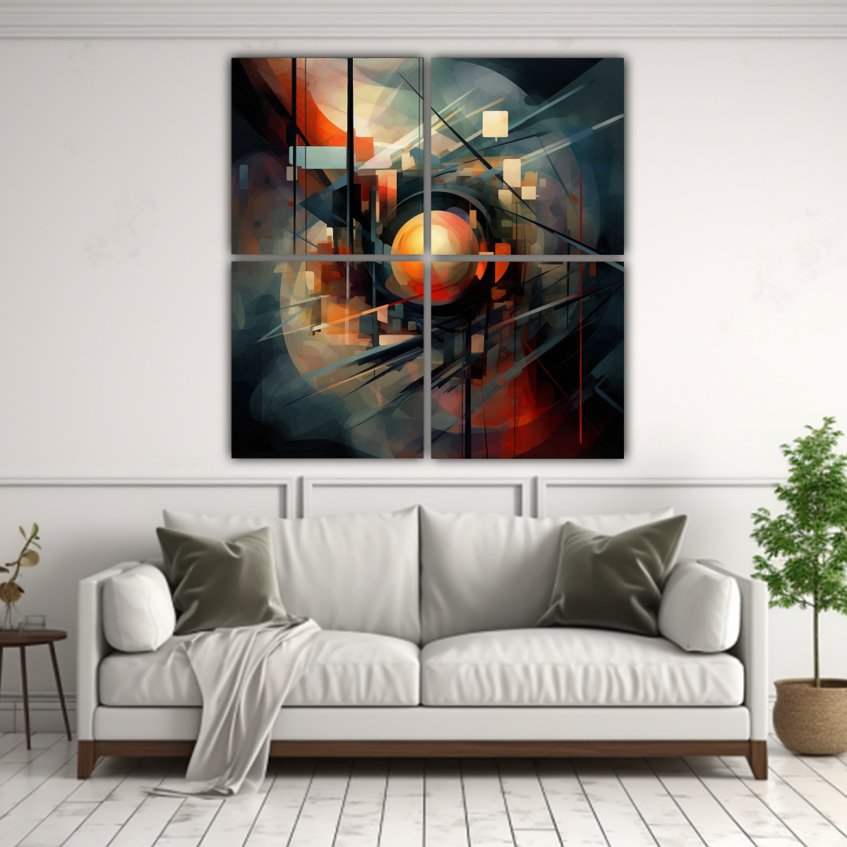 DecoCuadros ofrece cuadros abstractos asimétricos en 4 lienzos con impresión de alta calidad y entrega rápida y gratuita en Santiago