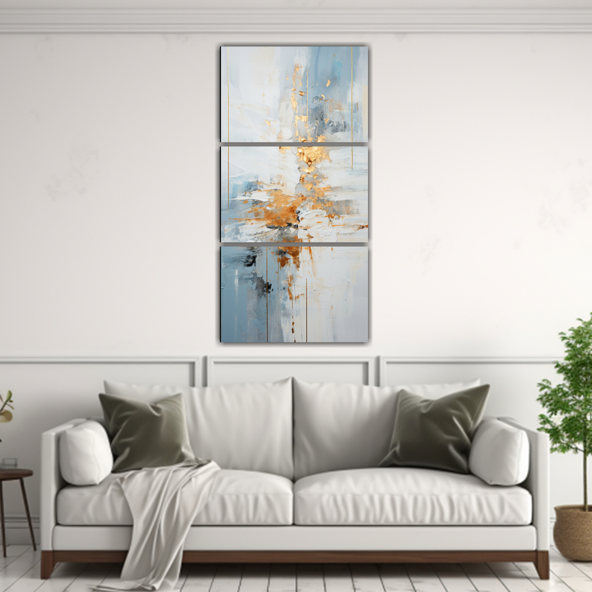 Para realzar su belleza, coloca este cuadro abstracto blanco y oro en una pared de tonos neutros para que resalte Combínalo con muebles en tonos tierra y accesorios dorados para crear un ambiente elegante y armonioso en tu sala de estar ¡Impresiona a tus invitados con esta pieza única!