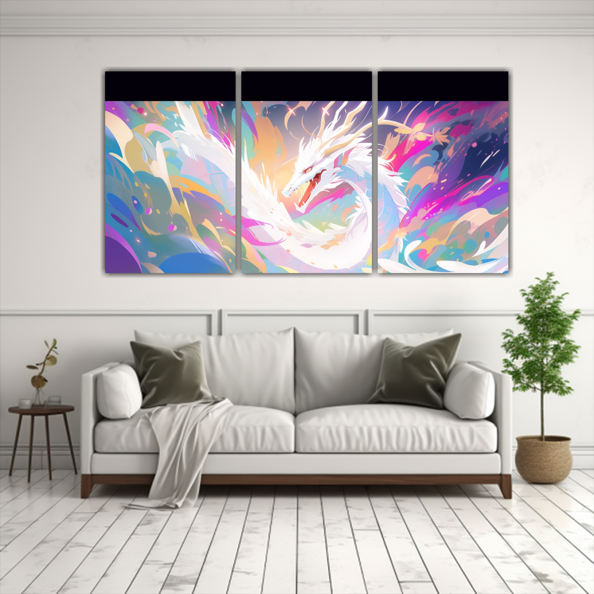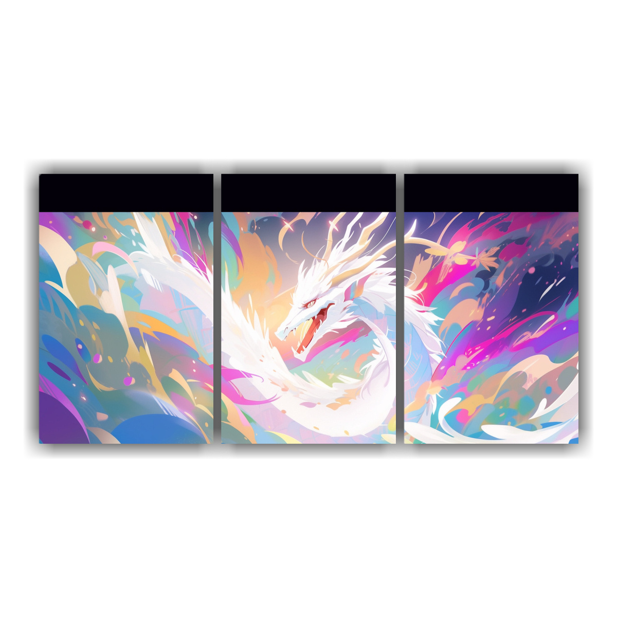 Sumérgete en la belleza de este set de 3 composiciones abstractas que capturan la esencia de un dragón en colores blanco y neonoir Envíos rápidos y gratuitos en Santiago, ¡adquiere el tuyo ahora!
