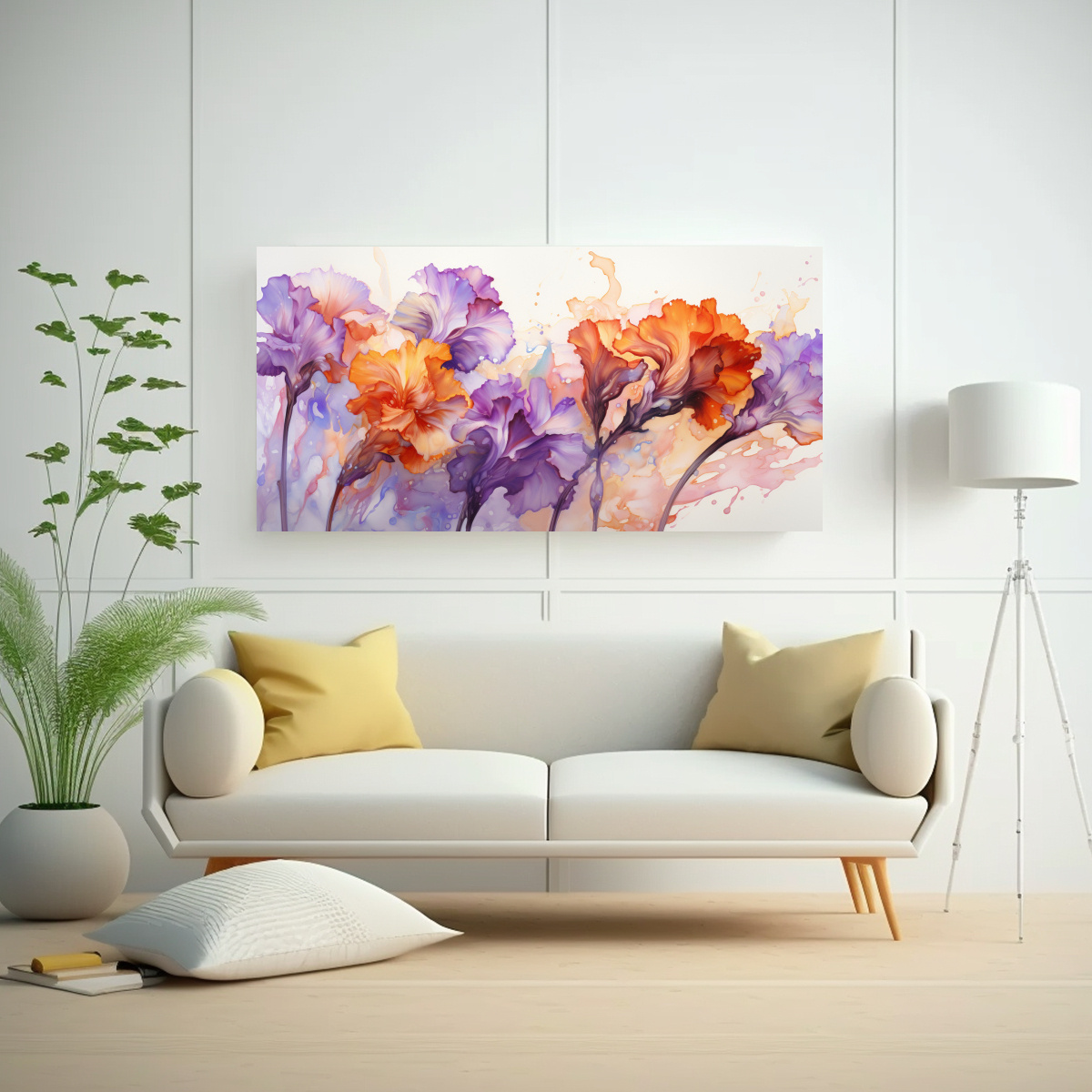 Renueva tu espacio con esta obra de arte conceptual clásica Los tonos púrpuras y naranjas transmiten energía y vitalidad Añade un toque de elegancia y modernidad a tu hogar con nuestros cuadros impresos en tela de alta calidad y bastidores de madera