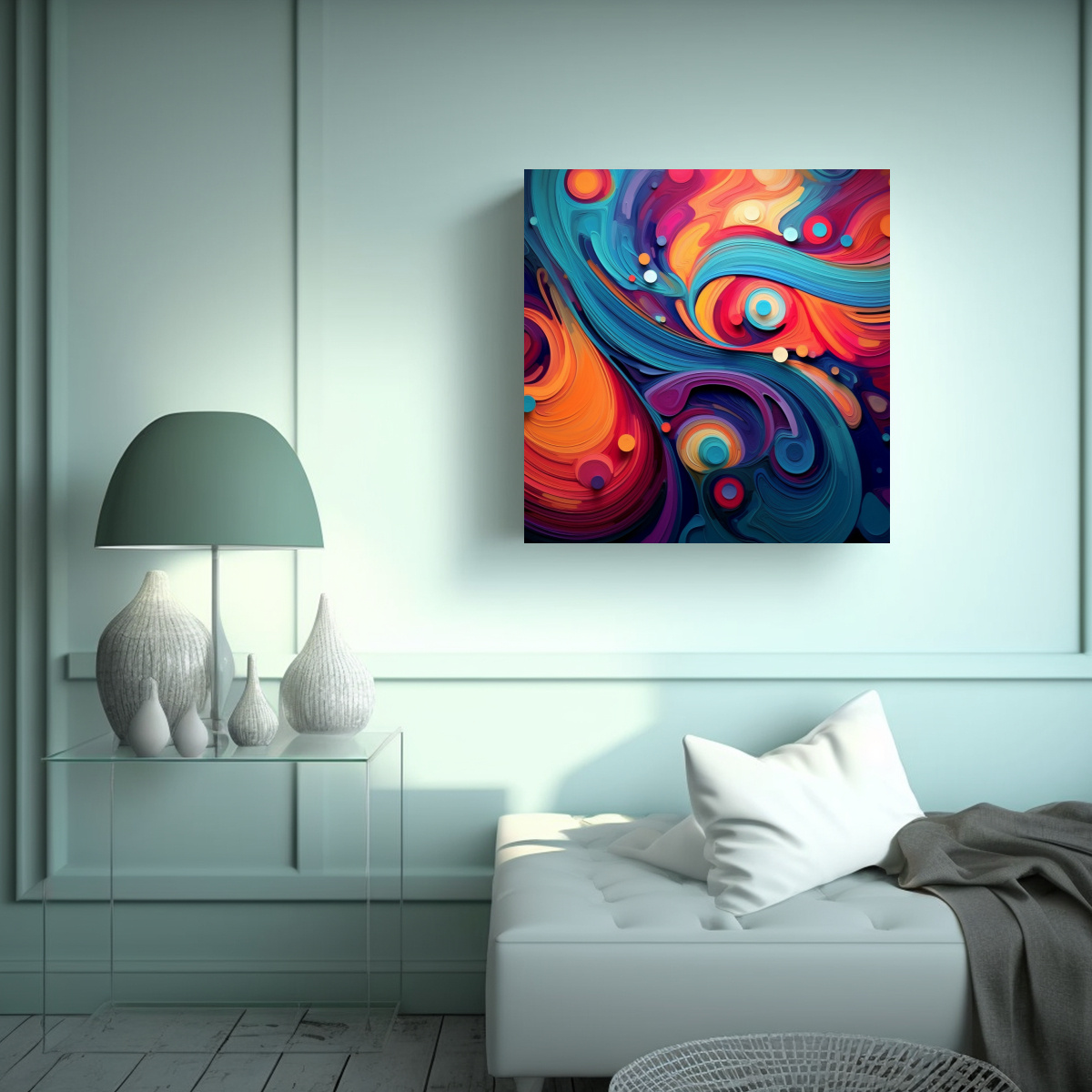 Este cuadro abstracto colorido con composición elegante es perfecto para complementar una decoración moderna y sofisticada Puedes colocarlo en el salón principal de tu hogar, sobre un sofá de color neutro, para resaltar su vibrante paleta de colores También puedes añadirlo a un espacio de trabajo, como una oficina o estudio, para darle un toque de energía y creatividad ¡Atrévete a experimentar y crea ambientes únicos con nuestros cuadros decorativos!