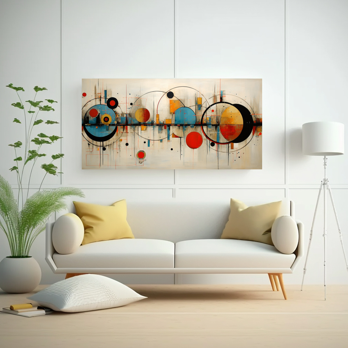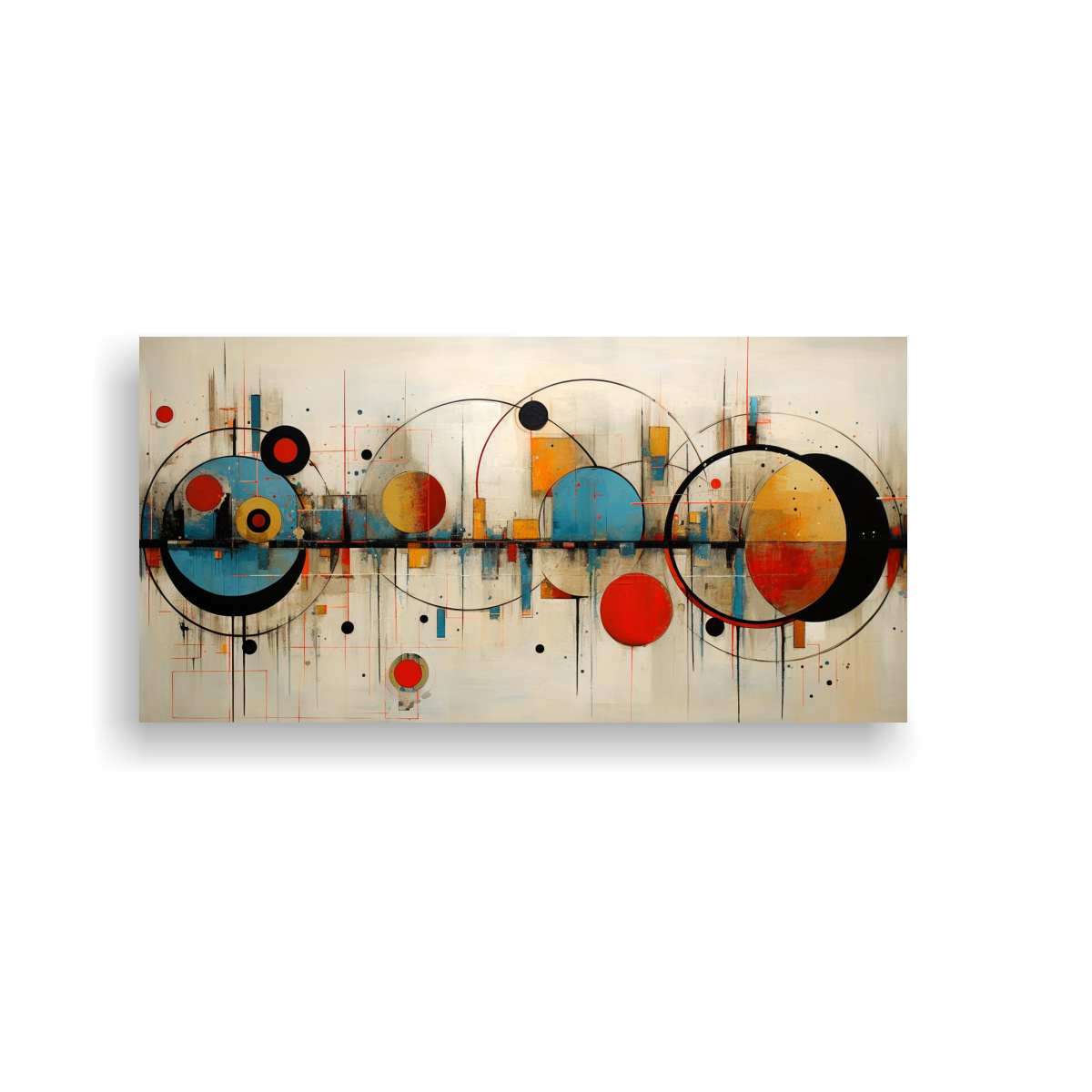 DecoCuadros ofrece cuadros decorativos impresos en tela de alta calidad con bastidores de madera Pinturas abstractas con círculos en los colores azul marino grisaceo, plateado, carmesí, mostaza, gris, beige y menta Diseños exclusivos, calidad y precios económicos Entrega rápida y gratuita en Santiago, envíos express a regiones