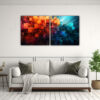 Coloca este cuadro abstracto con cuadrados de colores diferentes en tu sala de estar o estudio para crear un ambiente moderno y vibrante Combínalo con muebles en tonos neutros para resaltar su paleta de colores y añade cojines en colores que complementen la obra de arte ¡Dale vida a tus paredes con este cuadro único!