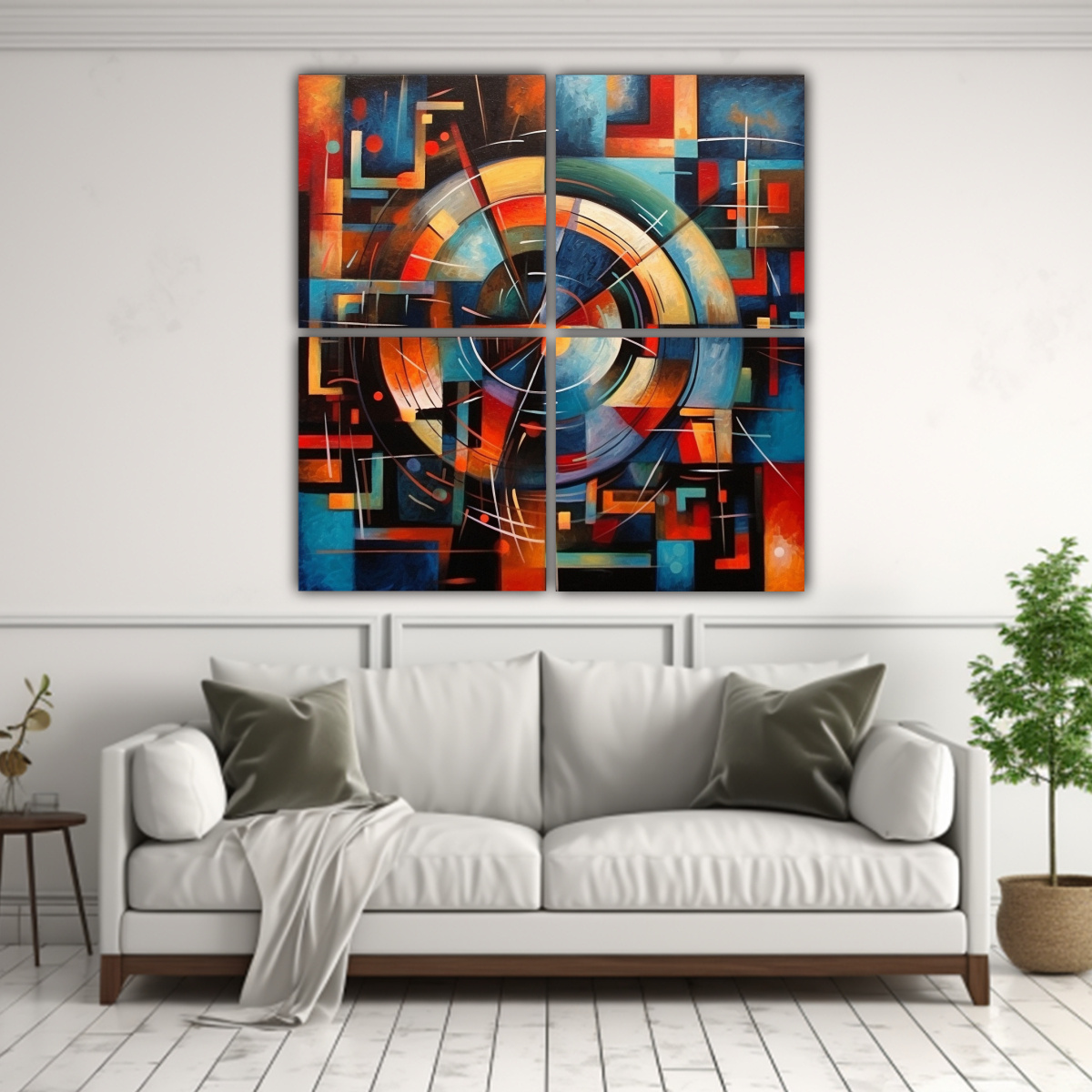 Este cuadro Pinturas abstractas Cuatro Lienzos Imagen Modernidad es perfecto para decorar tu sala de estar Colócalo sobre un sofá de color neutro y combínalo con cojines en tonos pasteles o colores similares a los del cuadro También puedes colocarlo en un espacio de trabajo para añadir un toque de color y modernidad