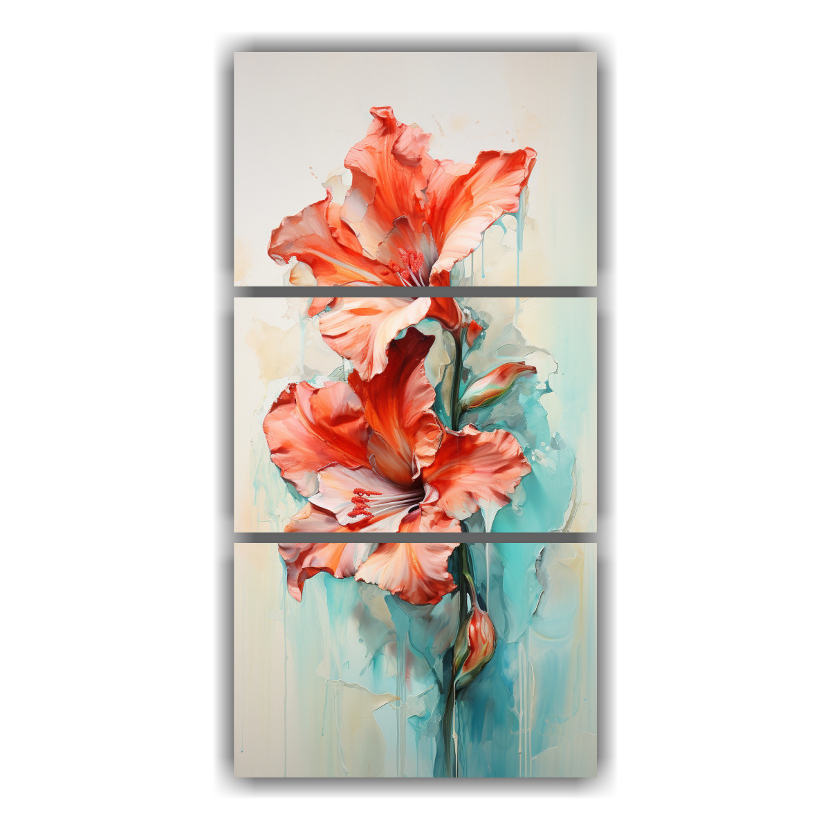 Pinturas Abstractas De Amarilis Rojas Y Turquesas En Lienzo Tres Patrones Intensos