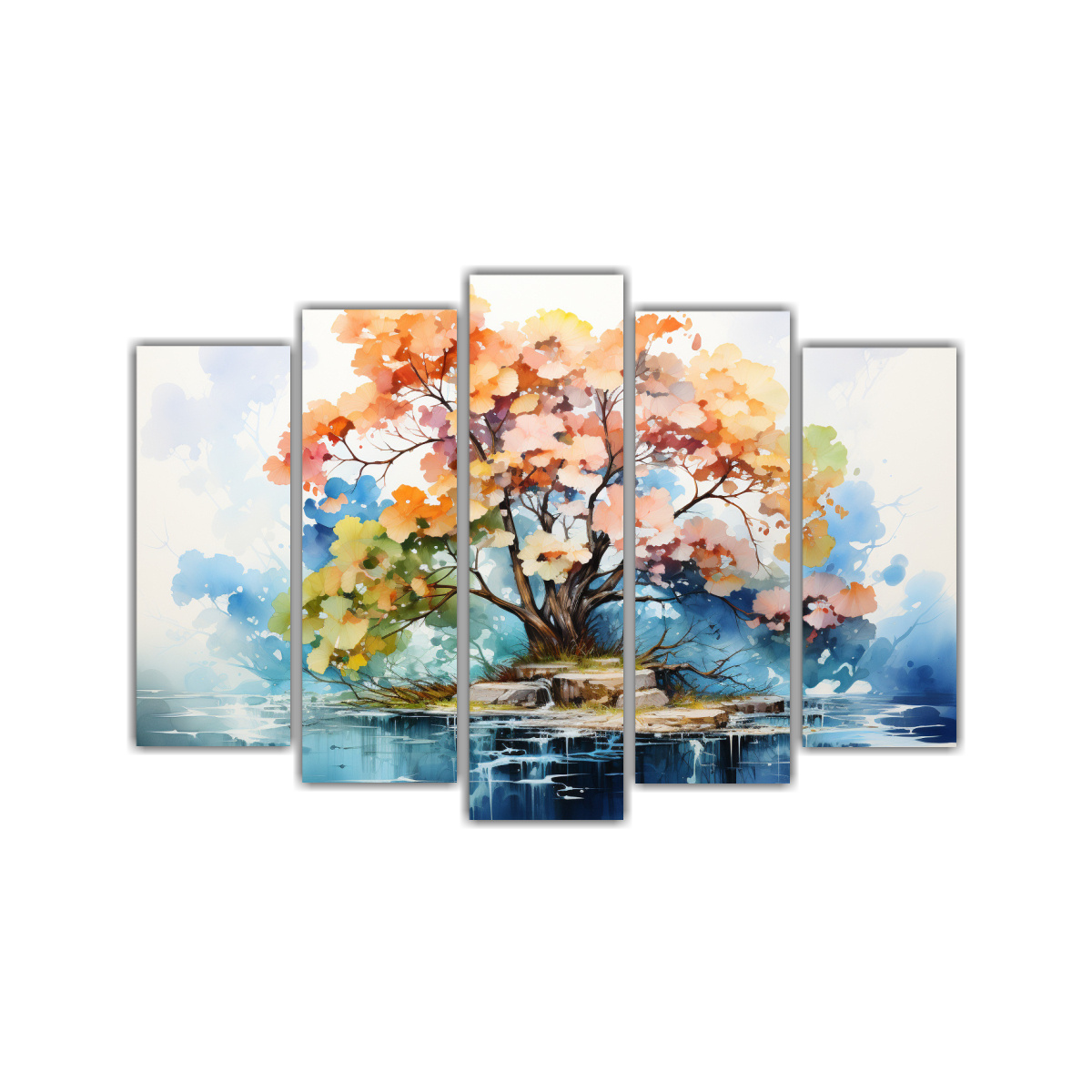 Pinturas Abstractas De árbol Bonsái Ginkgo Biloba En Colores Rojo Y Azul
