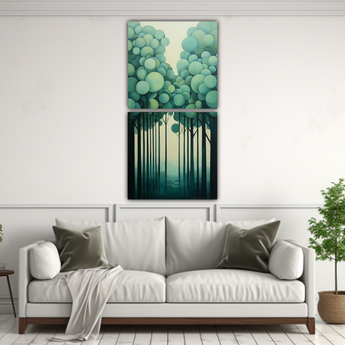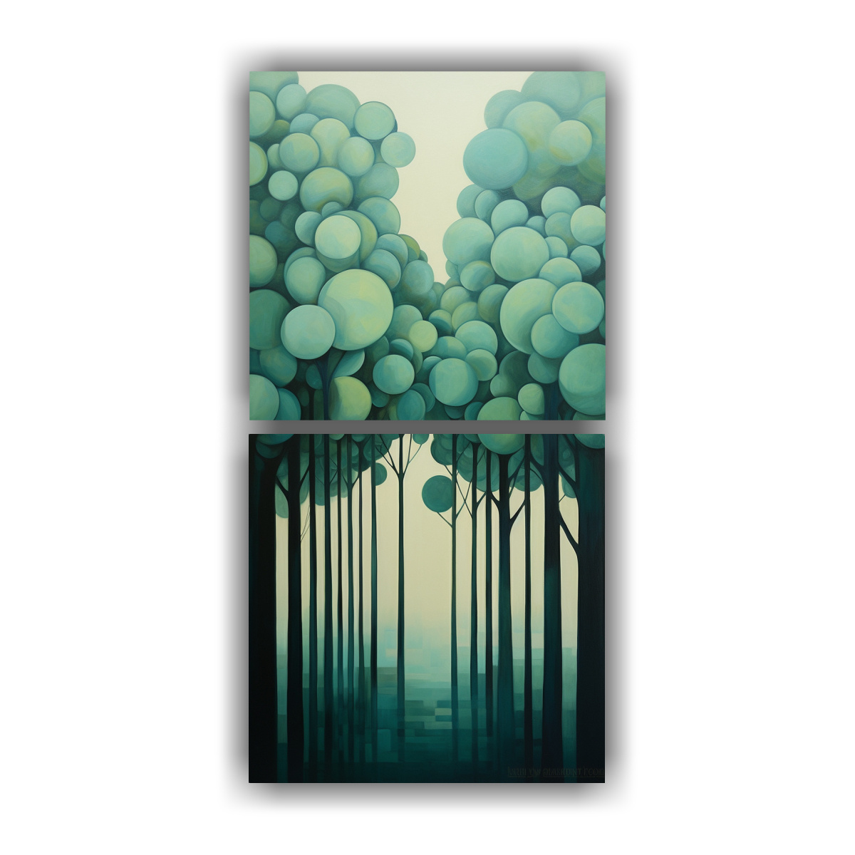 Este cuadro de árboles abstractos en tonos plateado, azul marino grisaceo, gris, menta y turquesa es ideal para decorar una sala de estar o un estudio Combínalo con muebles en tonos neutros como blanco, beige o gris para resaltar su belleza También puedes colocarlo en un dormitorio para crear un ambiente relajante y moderno Su diseño exclusivo y la excelente calidad de nuestros cuadros hacen de este producto una opción perfecta para cualquier espacio