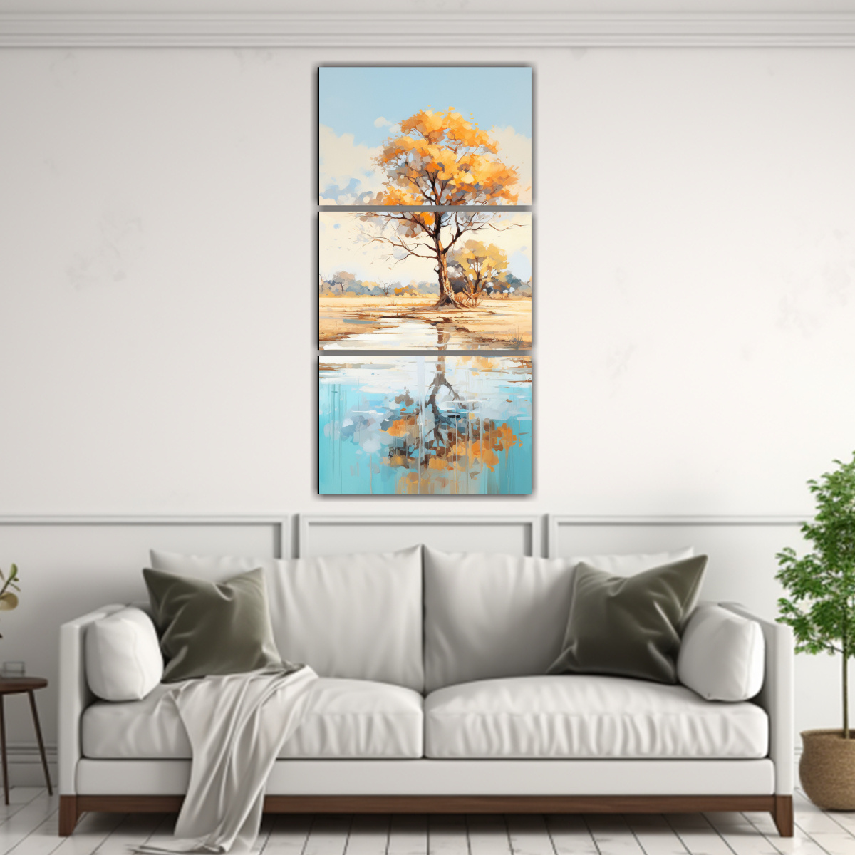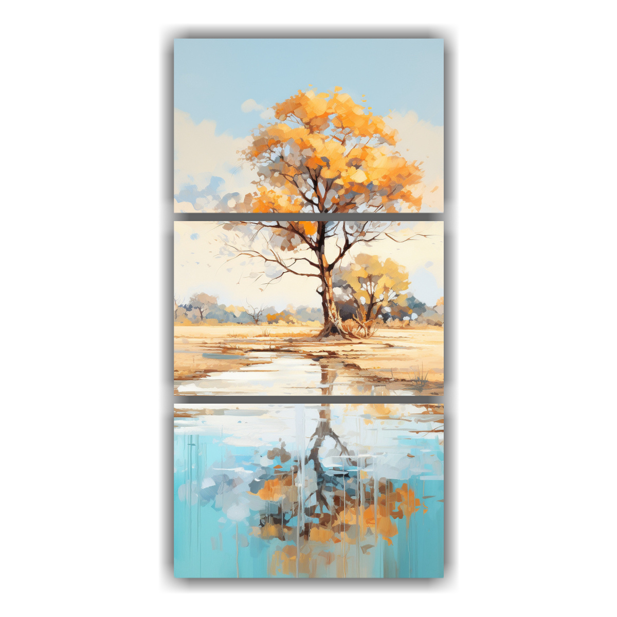 Pinturas Abstractas De árboles En Sabana Y Desierto, Colores Turquesa Y Dorado