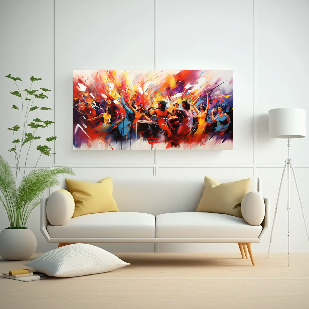 Este cuadro sería perfecto para colocarlo en tu sala de estar, justo encima del sofá Sus colores vibrantes y su interpretación abstracta de la energía de los festivales de música le darán un toque moderno y dinámico a tu espacio Combínalo con cojines en tonos neutros como grises y beiges para mantener el equilibrio y resaltar aún más la belleza de la obra