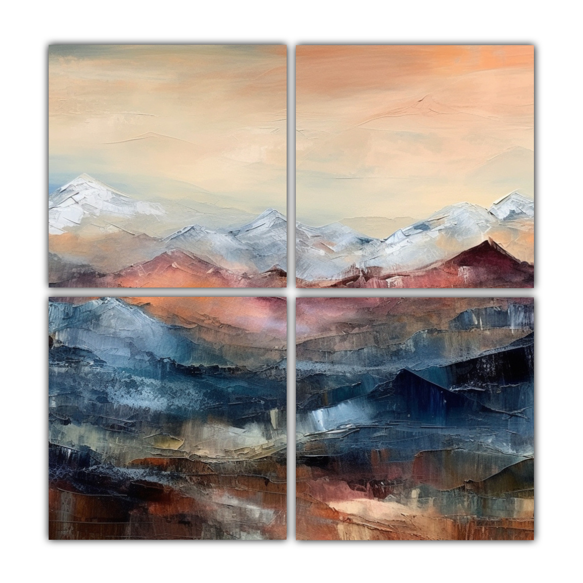 Pinturas Abstractas De Baño Dusk Mountainscape Con Diseño Terroso, 4 Composiciones Conceptuales