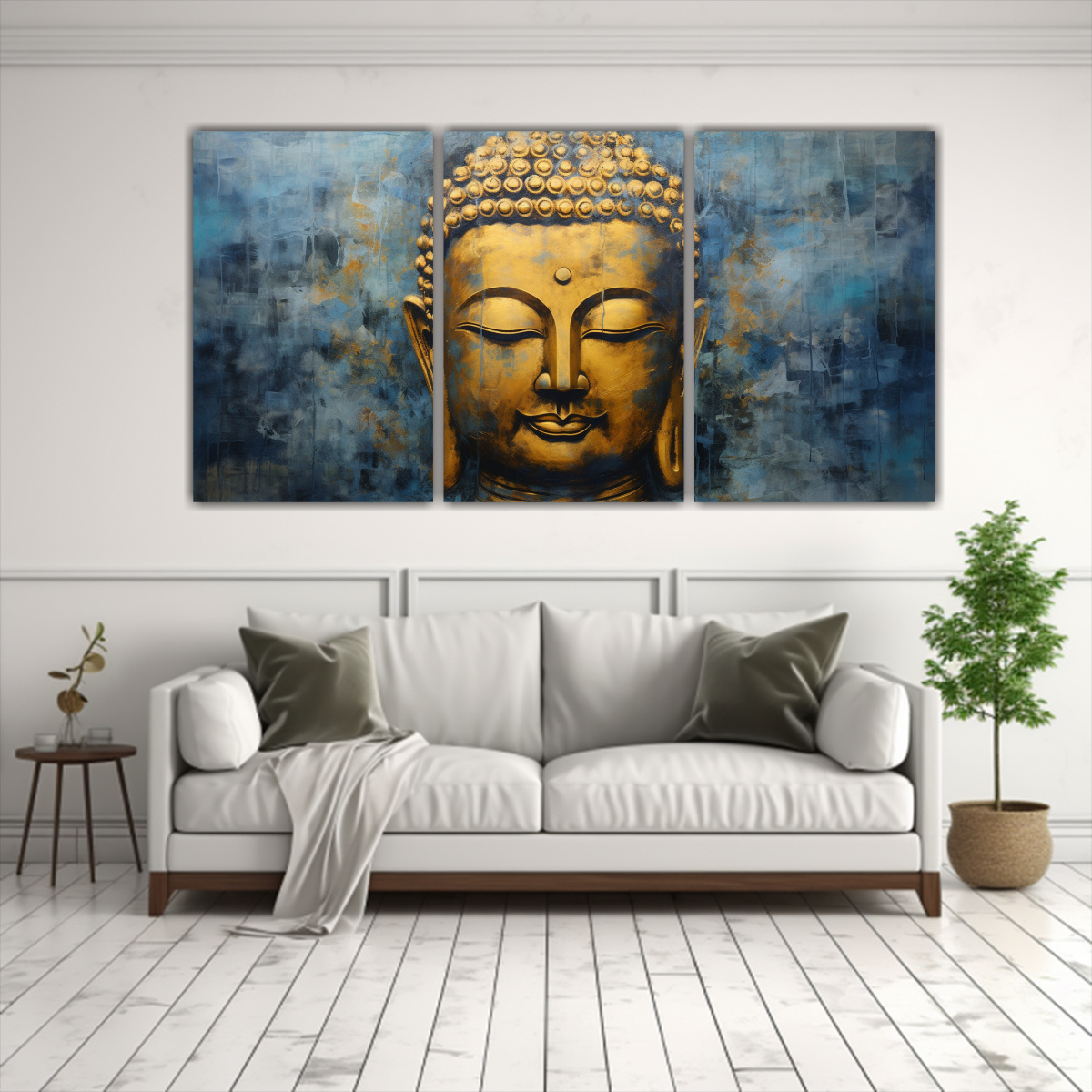 Pinturas Abstractas De Buda En Tonos Dorados Y Azules En Bastidor Moderno