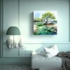 Recomendamos colocar este cuadro en la sala de estar o el dormitorio, ya que su paleta de colores suaves y relajantes brindará armonía y tranquilidad a tu ambiente Combínalo con muebles de tonos neutros y accesorios en colores similares para crear una atmósfera moderna y sofisticada