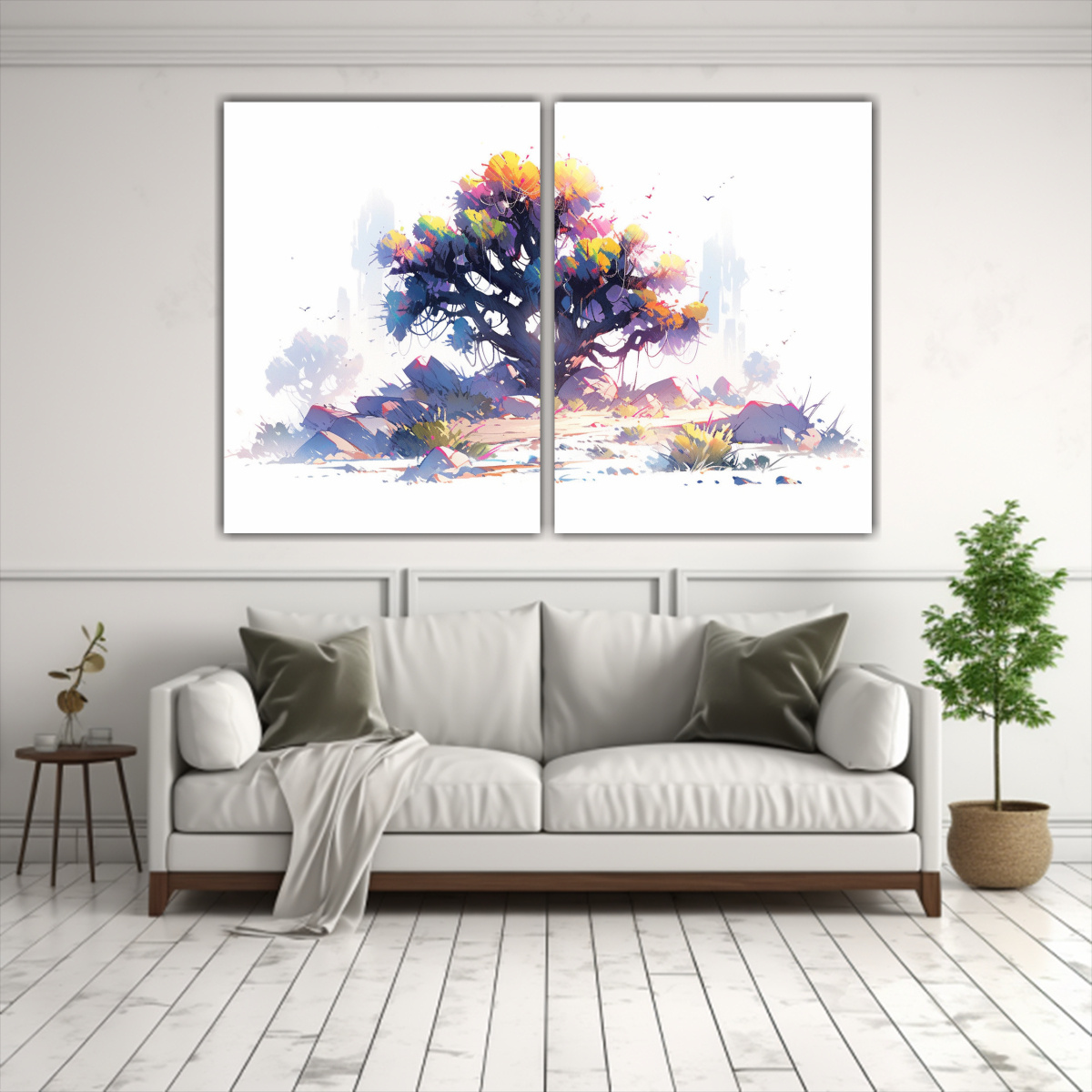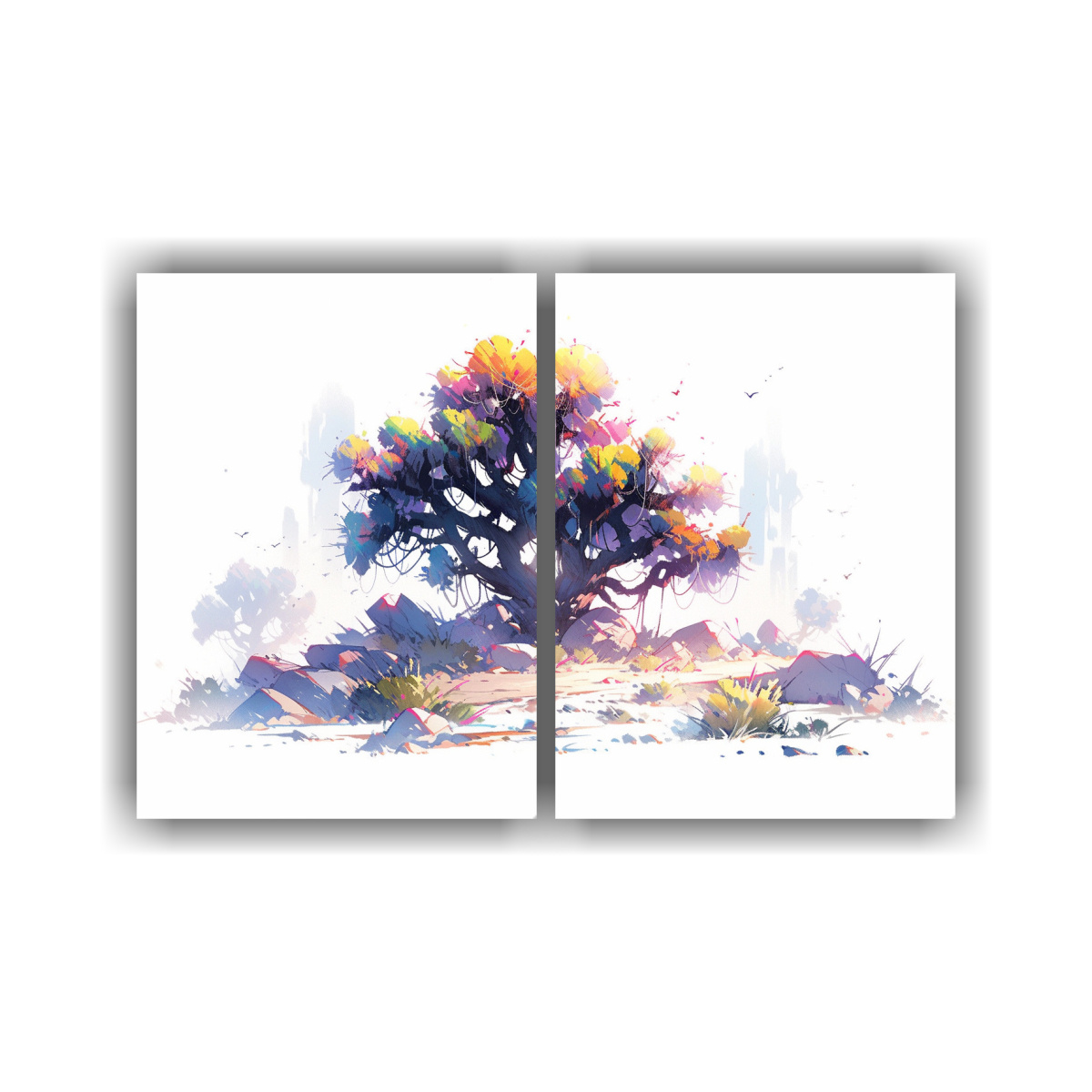 Para realzar la belleza de este cuadro abstracto de colores arcoíris en Joshua Tree, te recomendamos colocarlo en una pared blanca para que resalten sus vibrantes tonos Combínalo con muebles en tonos neutros para crear un ambiente elegante y moderno en tu sala de estar o dormitorio
