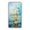 Pinturas Abstractas De Colores Turquesa Y Negro Con Flores Margaritas En Comedor A Dos Composiciones Ilustradas