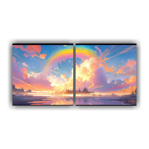 Pinturas Abstractas De Decoración Inspiradas En La Mañana Con Arcoíris Y Colores Amarillos.