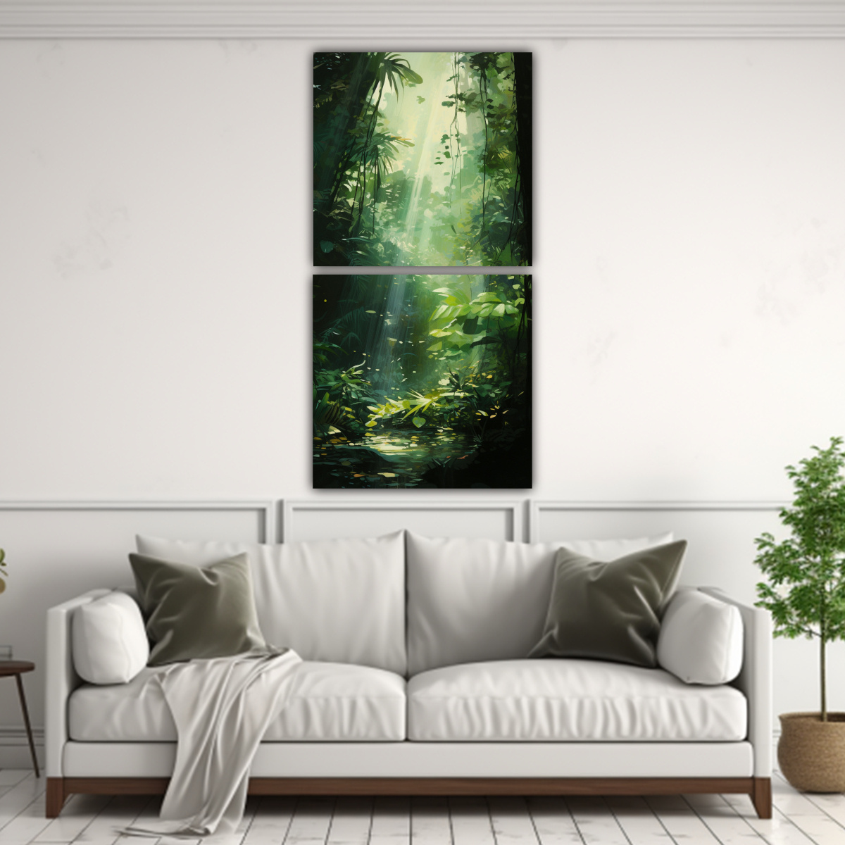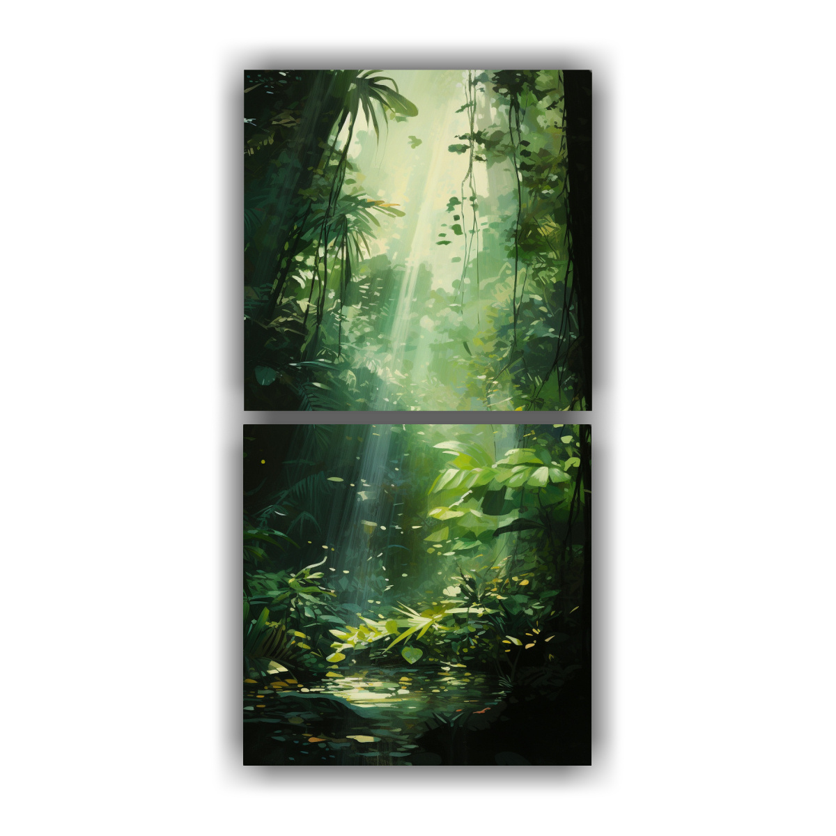 Pinturas Abstractas De Dos Artes De Pared En Bastidor De Madera En Forma De Dappled Sunlight Of A Dense Rainforest