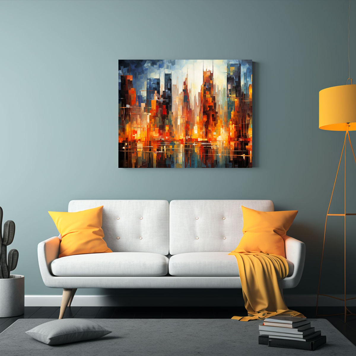 Impresionantes cuadros modernos de equilibrio visual que capturan la esencia de la ciudad con una mezcla de colores vibrantes y elegantes Entregas rápidas y gratuitas en Santiago, envíos exprés a regiones ¡Decora con estilo y personalidad!
